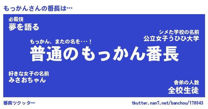 | 意味不明あだ名 | 『ペロリンもっかん』『永久保存もっかん』 |