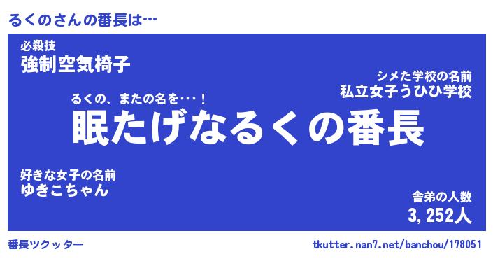 | 肩書あだ名 | 『るくの店長』『るくの総理大臣』 |