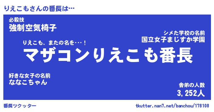 | 肩書あだ名 | 『りえこも社長』『りえこも総理大臣』 |