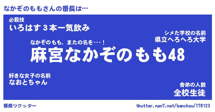 | ヒーロー風カッコイイあだ名 | 『スーパーナカゾノモモ』『幻影騎士ナカ』 |