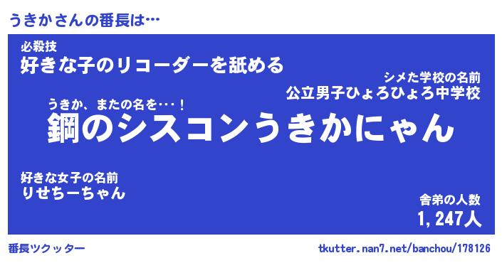 | 意味不明あだ名 | 『ペロリンうきか』『うきかフォーエバー』 |