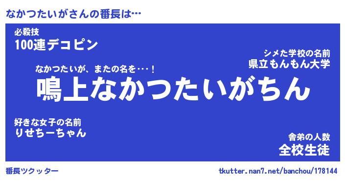 | ヒーロー風カッコイイあだ名 | 『スーパーナカツタイガ』『暗黒騎士ナカ』 |