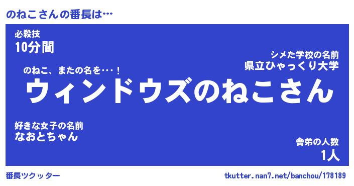 | ヒーロー風カッコイイあだ名 | 『スーパーノネコ』『ウルトラのねこマン』 |