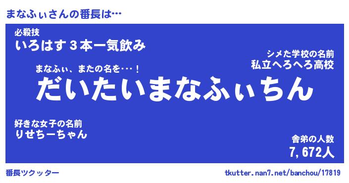 | 肩書あだ名 | 『まなふぃ社長』『まなふぃ総理大臣』 |