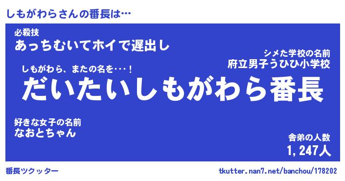 | 男性向けラノベタイトル風あだ名 | 『しもがわらの憂鬱』 |