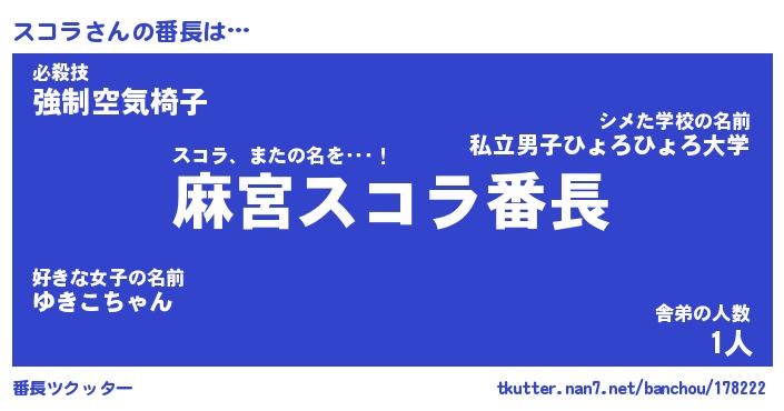 | ヘコむあだ名 | 『スコもー』『つくし』『スコぷりん』 |
