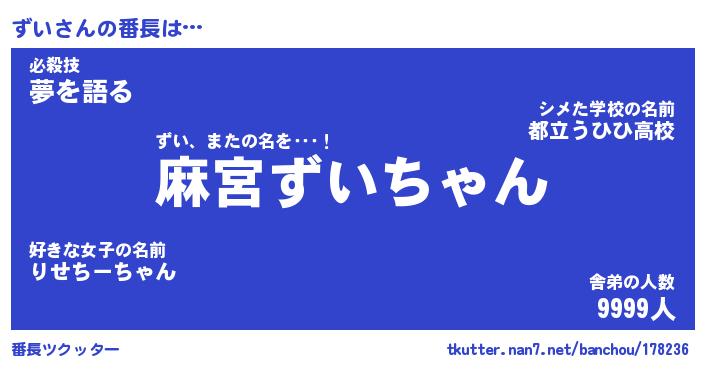 | ヒーロー風カッコイイあだ名 | 『スーパーズイ』『ウルトラずいマン』 |