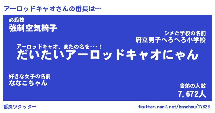 | 男性向けラノベタイトル風あだ名 | 『アーロッドキャオの憂鬱』 |