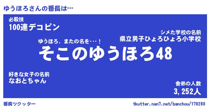 | 意味不明あだ名 | 『ペロリンゆうほろ』『永久保存ゆうほろ』 |