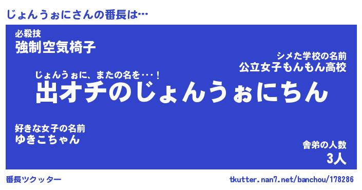 | 男性向けラノベタイトル風あだ名 | 『じょんうぉにの憂鬱』 |