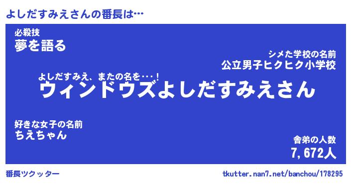| 肩書あだ名 | 『よしだすみえCEO』『よしだすみえ担任』 |