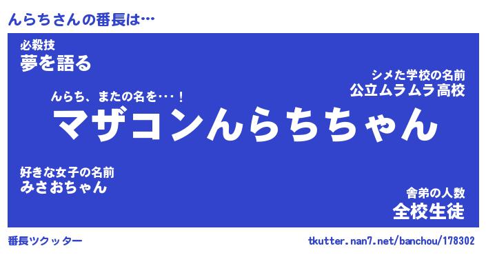 | 意味不明あだ名 | 『ペロリンんらち』『んらちフォーエバー』 |