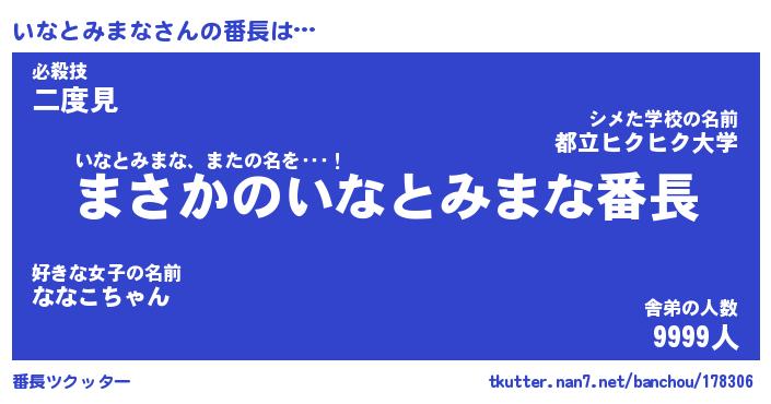 | 伝説のあだ名 | 『伝説のスナイパーいなとみまな』 |