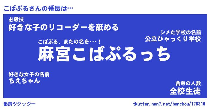 | 欧米人風あだ名 | 『マイケルこばぷる』『ウサインこばぷる』 |