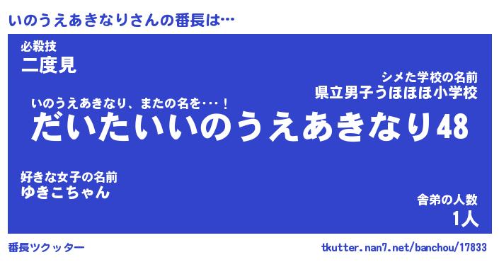 | 男性向けラノベタイトル風あだ名 | 『いのうえあきなりの憂鬱』 |