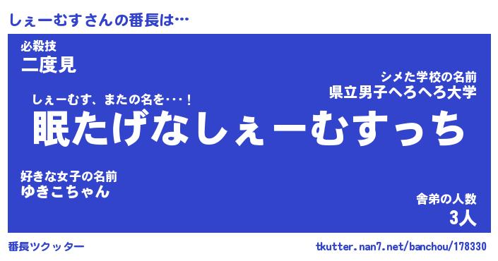 | ヘコむあだ名 | 『しぇもー』『酢こんぶ』『しぇっぺ』 |