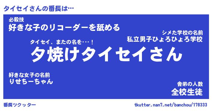 | ファンタジー風あだ名 | 『タイフェル』『エターナルタイセイー』 |