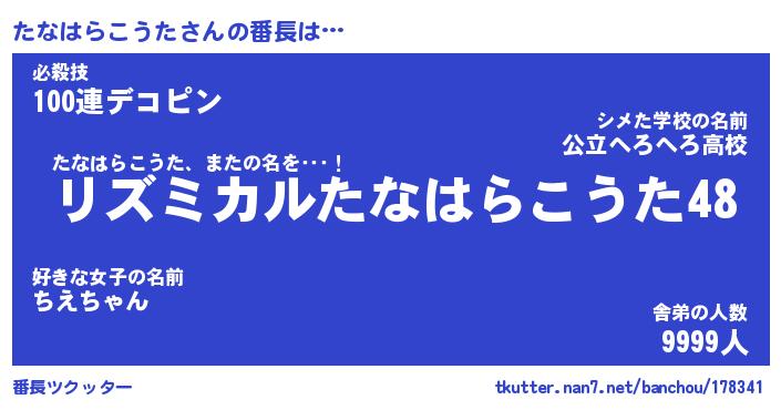 | 肩書あだ名 | 『たなはらこうた御曹司』 |