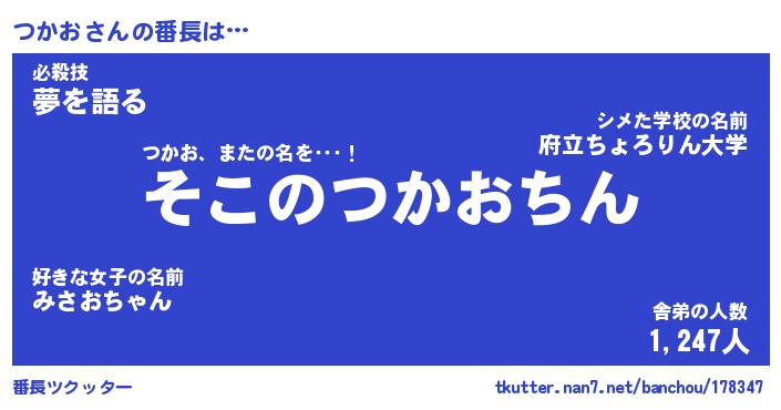 | 意味不明あだ名 | 『ペロリンつかお』『つかおフォーエバー』 |