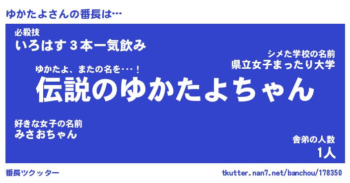 | 意味不明あだ名 | 『ペロリンゆかたよ』『永久保存ゆかたよ』 |