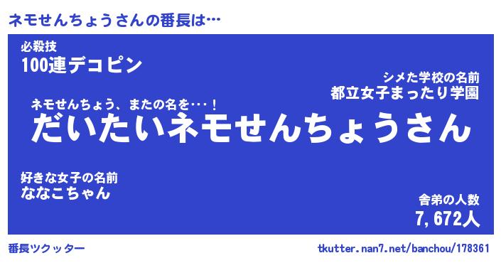 | ピコ太郎風あだ名 | 『ネコ四郎』『ピネ四郎』『ネモ六郎』 |