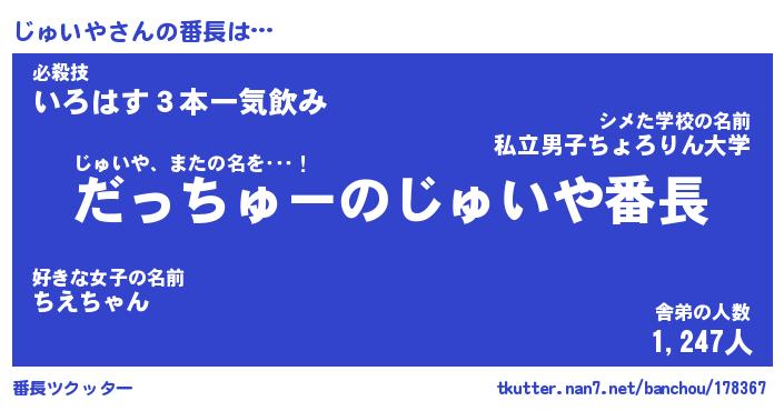 | 肩書あだ名 | 『じゅいや店長』『じゅいや大統領』 |