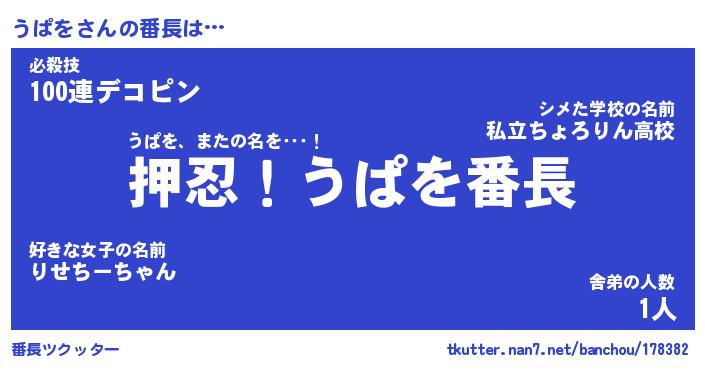 | ヒーロー風カッコイイあだ名 | 『スーパーウパヲ』『ウルトラうぱをマン』 |