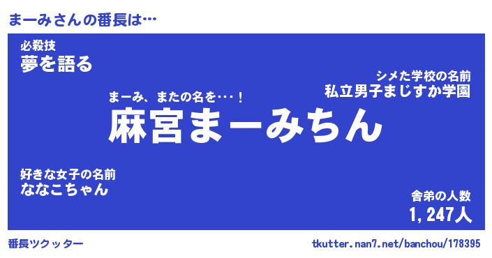 | 肩書あだ名 | 『まーみ社長令嬢』『まーみ総理大臣』 |
