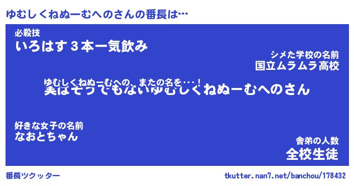 | 料理風あだ名 | 『ネギたっぷりゆむしくねぬーむへのの南蛮漬け』 |