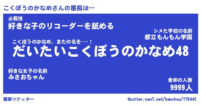 | ヒーロー風カッコイイあだ名 | 『スーパーコクボウノカナメ』 |