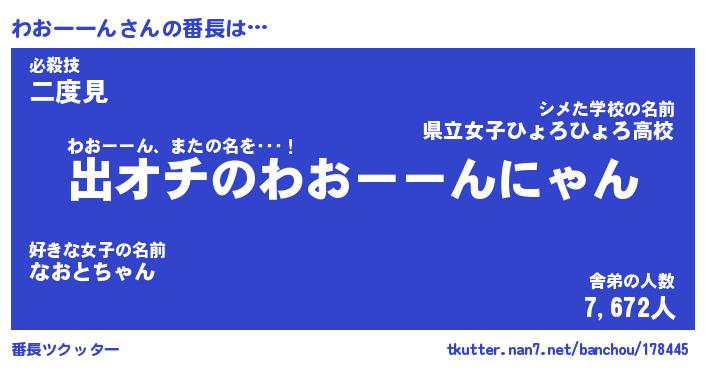 | 2回繰り返すあだ名 | 『わおわお』『わわおお』『げほげほ』 |
