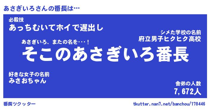 | 肩書あだ名 | 『あさぎいろ社長』『あさぎいろ国家主席』 |