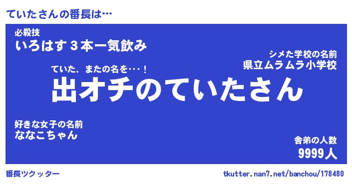 | ポケモン風あだ名 | 『テイチュウ』『テイタダネ』 |