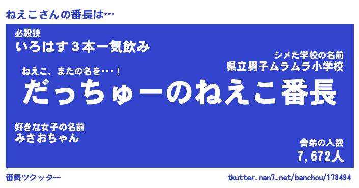 | 意味不明あだ名 | 『ペロリンねえこ』『ねえこフォーエバー』 |