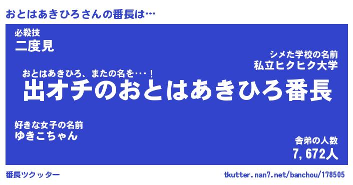 | 男性向けラノベタイトル風あだ名 | 『おとはあきひろの憂鬱』 |
