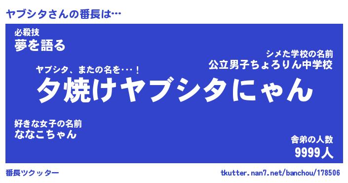 | ポケモン風あだ名 | 『ヤブチュウ』『ヤブシダネ』 |