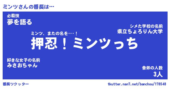 | ポケモン風あだ名 | 『ミンチュウ』『ミンツダネ』 |