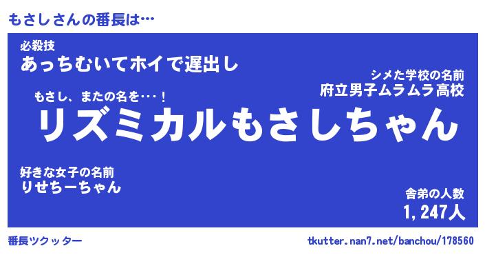 | ヒーロー風カッコイイあだ名 | 『スーパーモサシ』『ウルトラもさしマン』 |