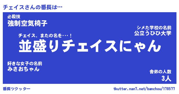 | 2回繰り返すあだ名 | 『チェチェ』『チチェェ』『おらおら』 |