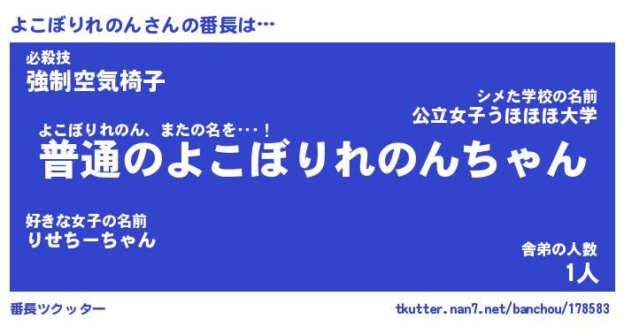 | 伝説のあだ名 | 『不死鳥のスナイパーよこぼりれのん』 |