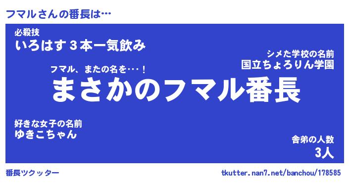 | ヒーロー風カッコイイあだ名 | 『スーパーフマル』『ウルトラフマルマン』 |