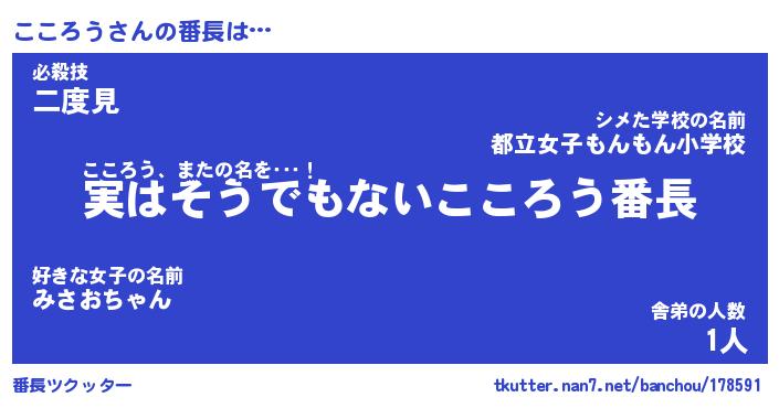 | 意味不明あだ名 | 『ペロリンこころう』『永久保存こころう』 |