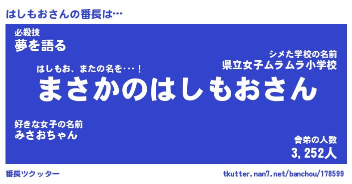 | 肩書あだ名 | 『はしもお御曹司』『はしもお大統領』 |