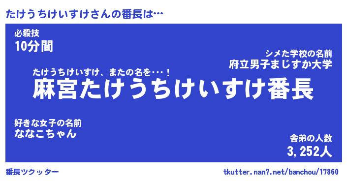 | ヒーロー風カッコイイあだ名 | 『スーパータケウチケイスケ』 |