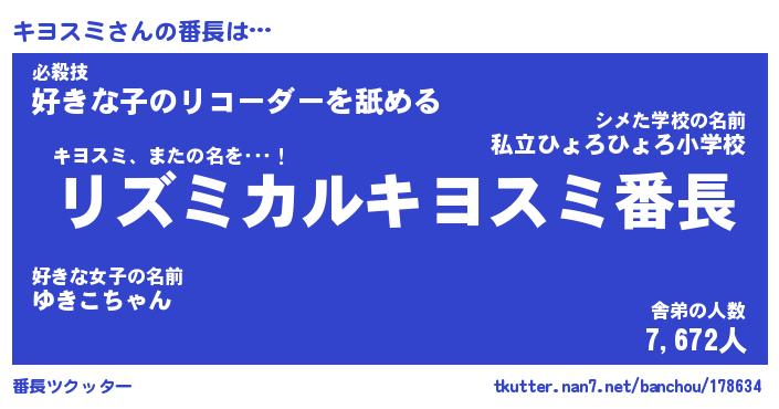 | 意味不明あだ名 | 『ペロリンキヨスミ』『永久保存キヨスミ』 |