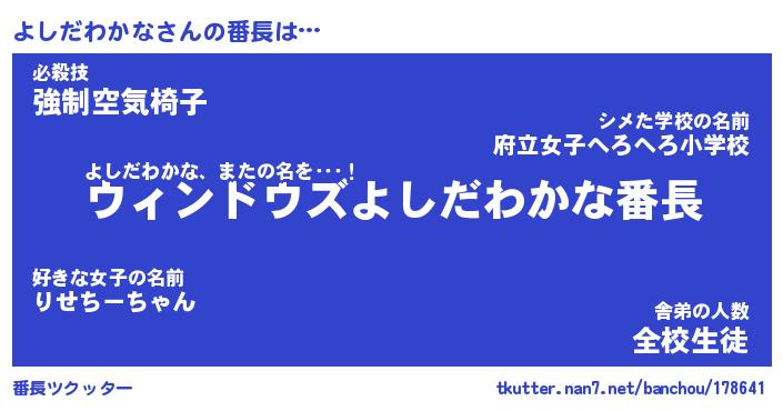 | 肩書あだ名 | 『よしだわかなCEO』『よしだわかな団長』 |