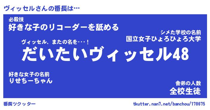 | 恥ずかしいあだ名 | 『プリティーヴィッセル』『ヴィっちょ』 |