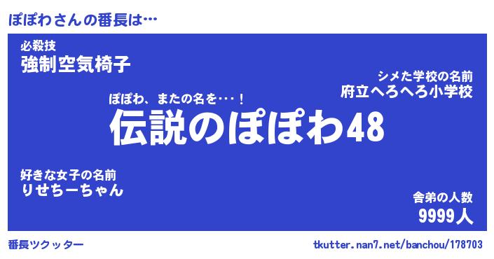 | 伝説のあだ名 | 『伝説のスナイパーぽぽわ』 |