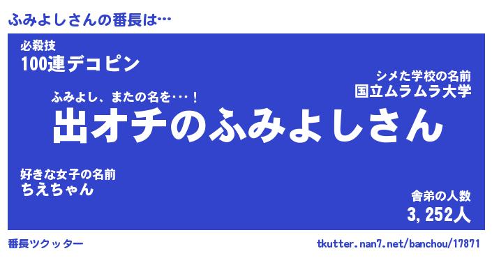 | ピコ太郎風あだ名 | 『フコ四郎』『ピフ一郎』『フミ十郎』 |
