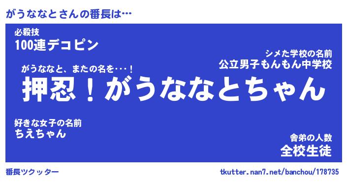| ヘコむあだ名 | 『がうにゅー』『つくし』『がうっぺ』 |